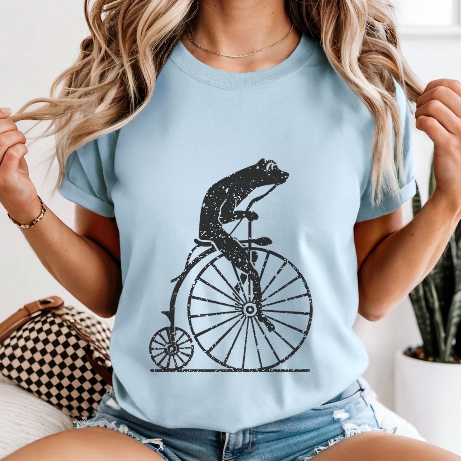 Meet your new favorite conversation-starter tee: a frog on bicycle design riding a vintage penny-farthing in a clean, lightly distressed graphic style. It’s made for the Quirky Vintage Naturalist type who loves nature, frogs and toads, vintage illustration vibes, and effortless outfits that feel a little different without being loud. Easy to throw on with denim, layer under a flannel, or wear to markets, garden days, bookshops, and casual hangs. It also makes a spot-on gift for frog lovers, cyclists, cottagecore fans, and anyone who collects quirky vintage-inspired art.